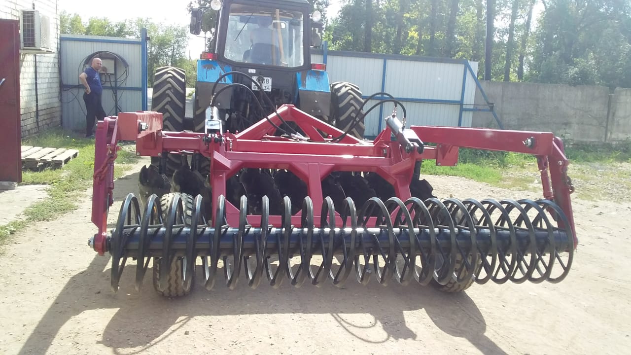 Прицепная дисковая борона БД-2,7х2П со спиральным шлейф-катком предназначена для уничтожения сорной растительности и измельчения пожнивных остатков, для предпосевной обработки почвы с одновременным дроблением комьев и прикатывания поверхностного слоя. После обработки поверхность поля покрыта мульчированным слоем почвы, что способствует сохранению влаги.