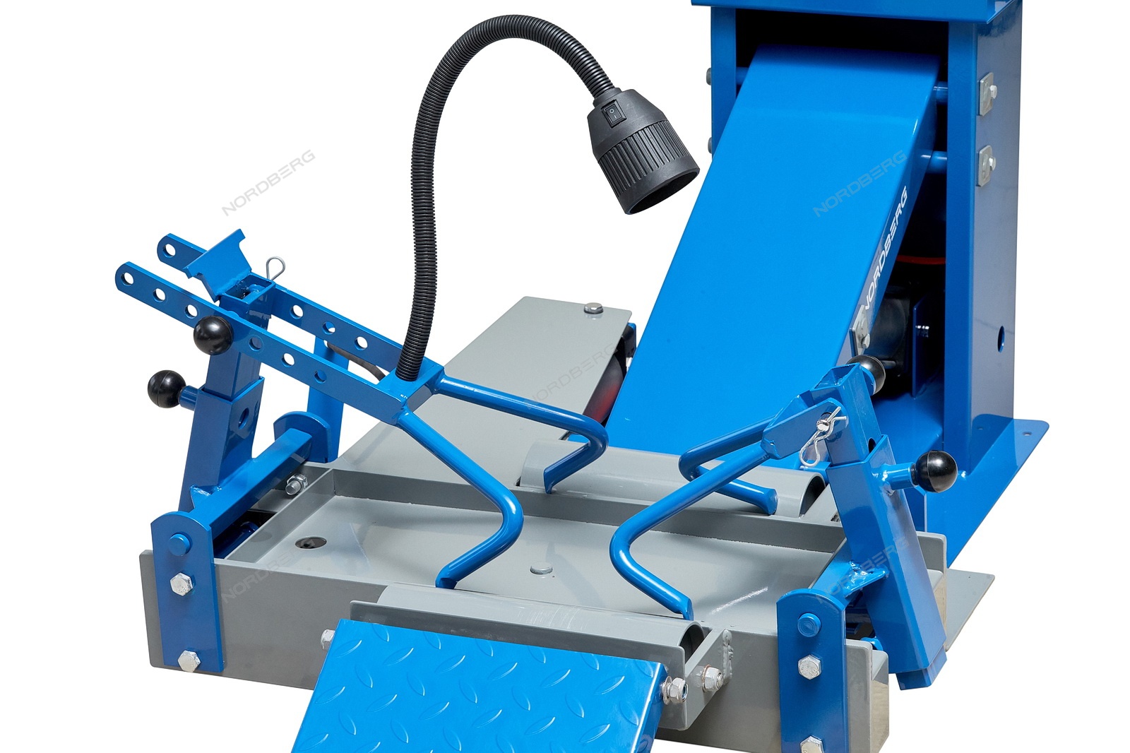 Пневматический борторасширитель NORDBERG D5 для шин грузовых автомобилей с установочным столом и подъемником разработан для фиксации шины, расширения ее бортов и подъема во время ремонта.
