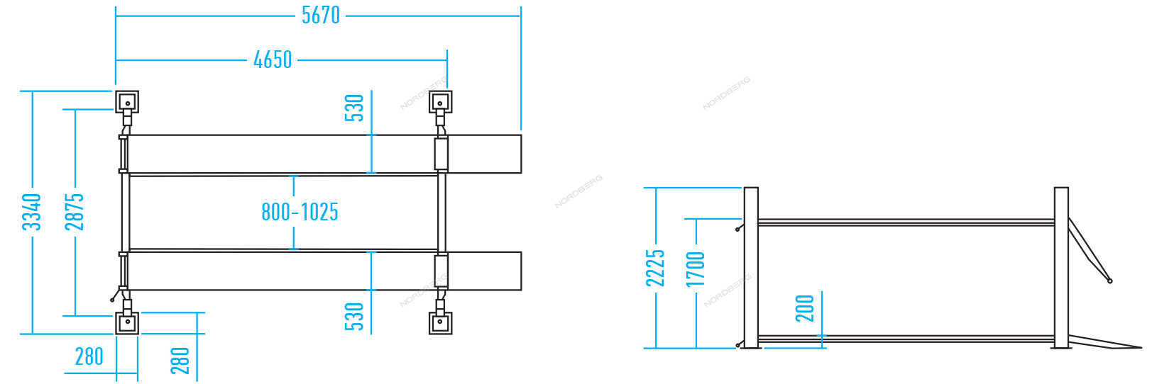 - Регулировка расстояния между платформами в зависимости от типа транспортного средства. Расстояние между трапами от 800 до 1025 мм