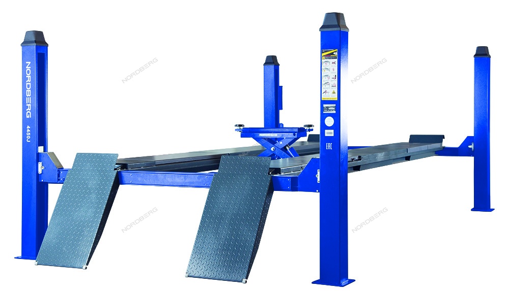 Подъемник четырехстоечный NORDBERG 4450J c траверсой подходит для сход-развала.