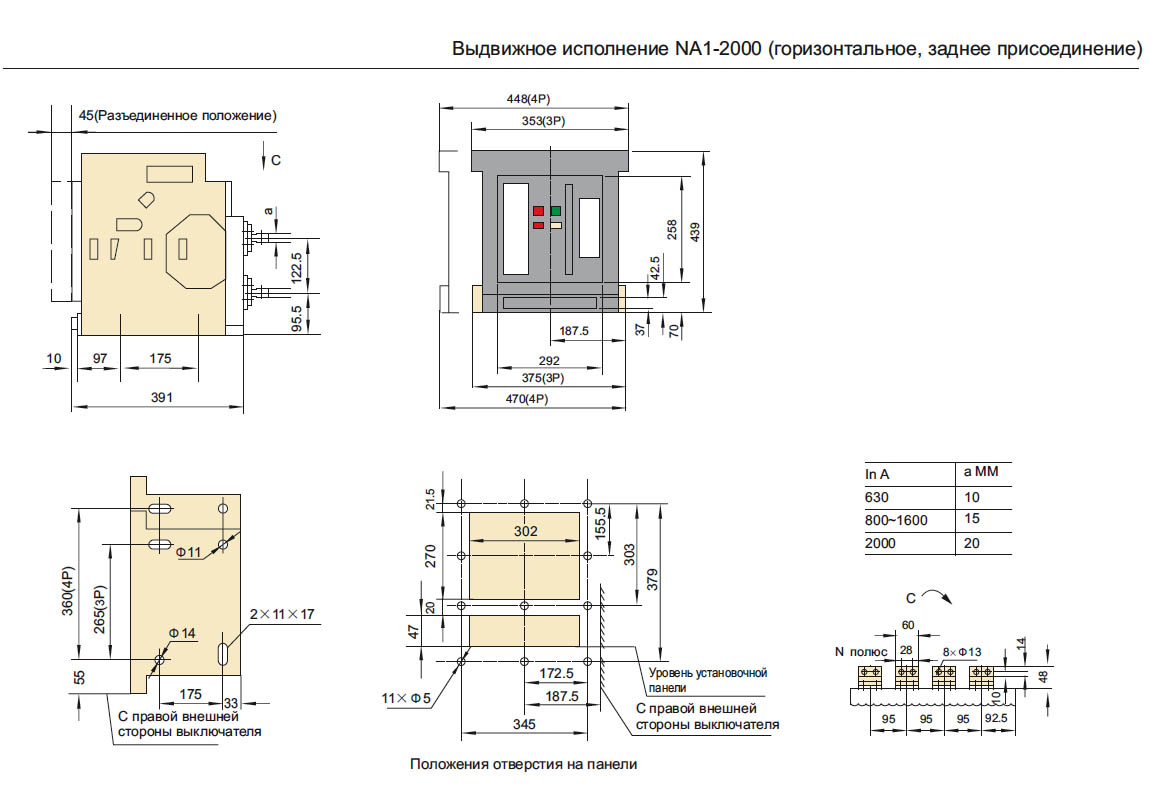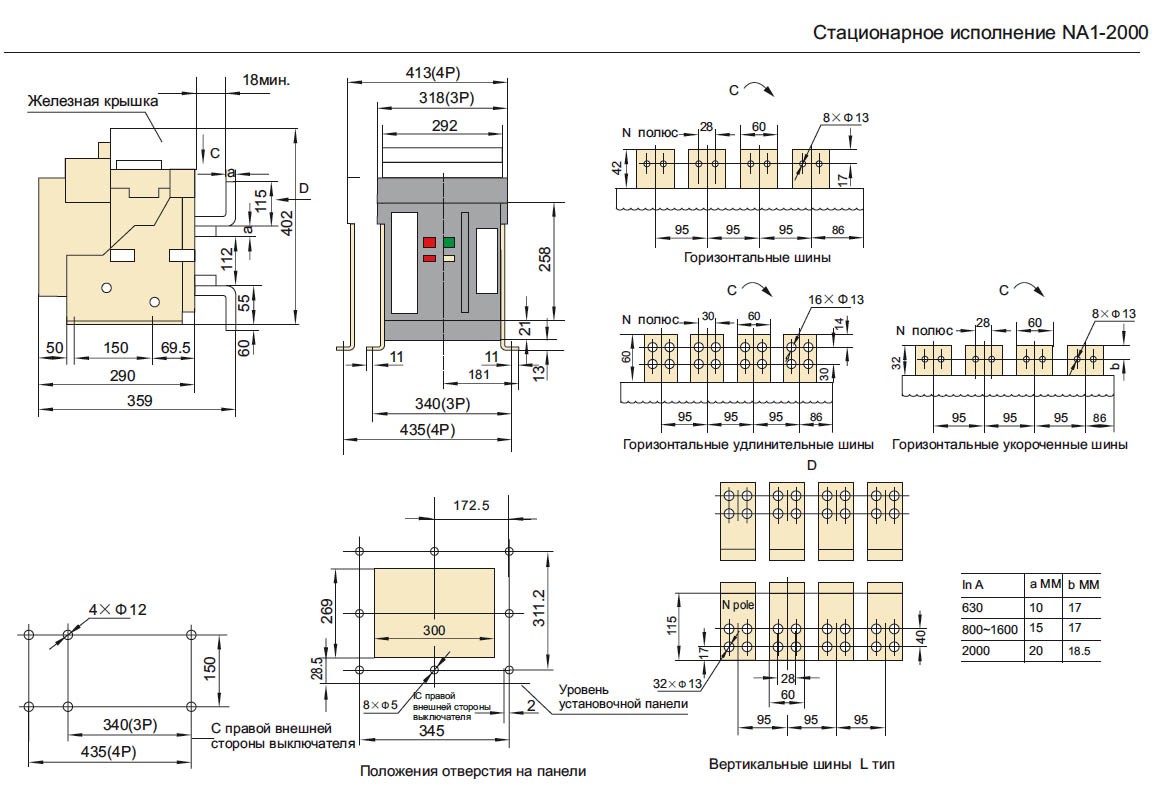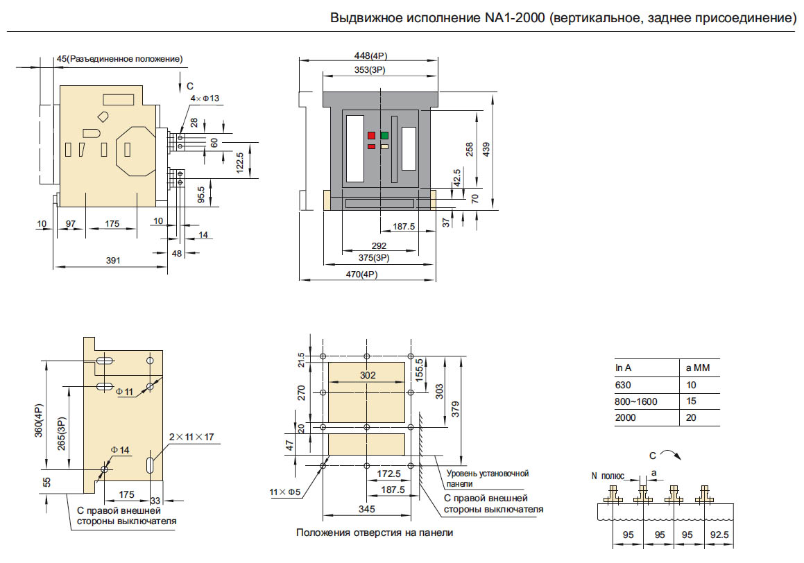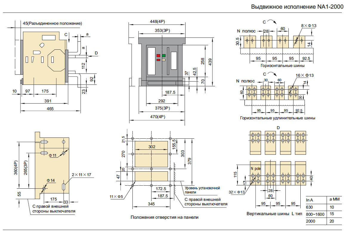 | Номинальный ток In, A | 630 | 800 | 1000 | 1250 | 1600 | 2000 | |