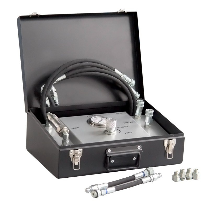 В конструкции MS611 предусмотрено наличие расходомера и манометра, для определения потока и давления рабочей жидкости. В зависимости от режимов проверки можно определить максимальное давление, создаваемое насосом, работоспособность рулевой рейки в центральном, крайнем левом и крайнем правом положениях.