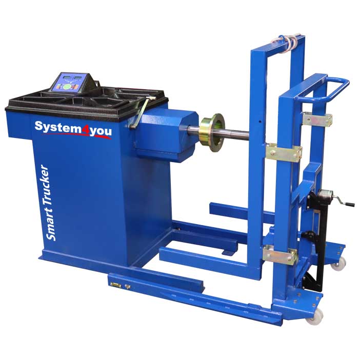 В стандартную комплектацию входит тележка с ручным подъемником (домкрат). Используется для упрощения транспортировки колес от места снятия их с грузовика до станка, а также при посадке тяжелых колес (до 200 кг) на вал станка.