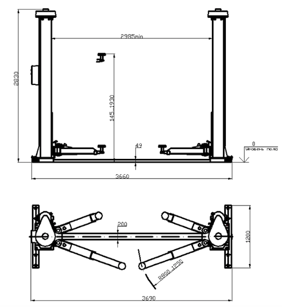 Подъемник напольный электромеханический двухстоечный предназначен для ремонта и обслуживания автомобилей различного класса массой до 5 т.