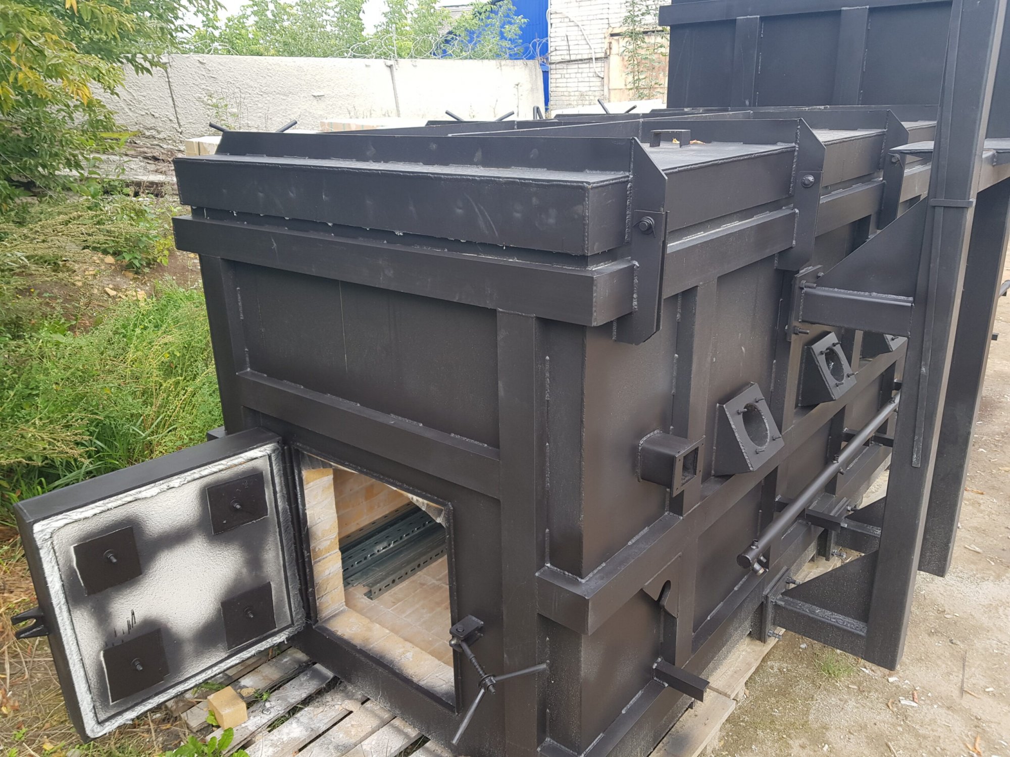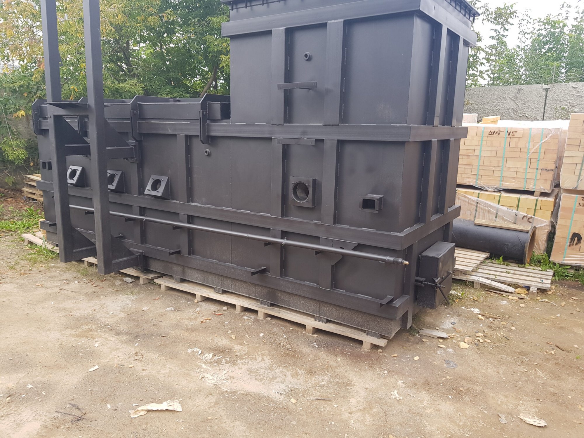 Корпус инсинератора футеруется шамотным кирпичом ШБ-5 толщиной 114 мм, крышка люка футеруется Z-блоками