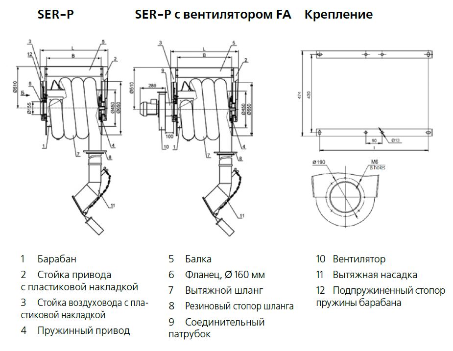 Механические вытяжные катушки SER-P — это самое легкое и эффективное решение по удалению выхлопных газов в гаражах и от стационарных рабочих мест. Шланг перемещается вместе с машиной на подъемнике и на разных этапах проведения работ.