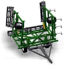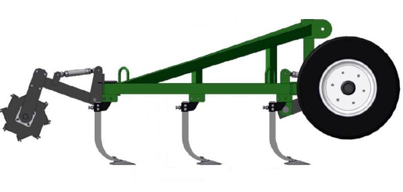 глубина обработки - 4...10 см; расстояние между стойками в ряду - 720 мм; минимальное расстояние меду рядами - 660 мм; расположение рабочих органов в три ряда; перекрытие при ширине лапки 270 мм – между соседними лапками других рядов - 30 мм с каждой стороны; несущие балки агрегата изготавливаются из профильной трубы 100х100х5; рабочий орган - усиленная стойка КПС с лапой 270 мм (возможна комплектация лапами 330 мм или долотообразными лапами). Стойка установлена на спецдержателе позволяющим регулировать установку каждой стойки по высоте (для выравнивания следа от колеи трактора, нивелирования неровностей поля). Стрельчатые лапы выполнены из стали 65Г, режущие кромки наплавлены сормайтом. Стальные держатели лап выдерживают значительные нагрузки; опорные колеса регулируются талрепом.