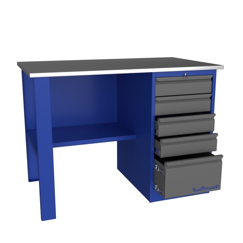 Верстак имеет глубину — 700 м, ширину — 1200 мм и высоту — 870 мм. Вес изделия составляет 77 кг. Верстак данной модели не оснащён перфорированным экраном. Толщина столешницы изделия составляет 24 мм. Толщина металлического покрытия — 1 мм. Максимальный вес, воздействие которого сможет выдержать рабочая поверхность верстака, составляет 300 кг.