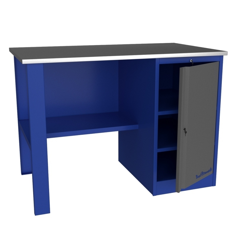 Основания верстака произведены из листового металла, покрытого специальной краской для защиты от коррозии. Весит верстак 70 кг. Его ширина составляет 1200 мм, глубина — 700 мм, а высота — 870 мм. Изделие не имеет экрана. Данная модель способна выдержать нагрузку не более 300 кг.