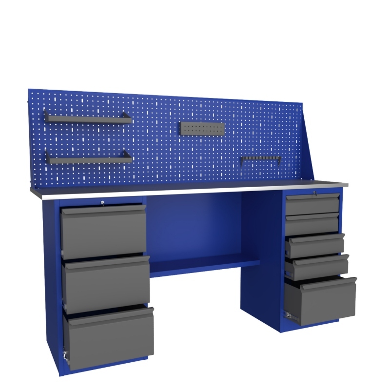 Данная модель прекрасно подойдет для оборудования рабочих мест специалистов мастерских, автомобильных сервисов – слесарей, механиков, плотников и других. Максимальная нагрузка для данного верстака составляет 300 кг, поэтому его также можно использовать в небольших гаражах.