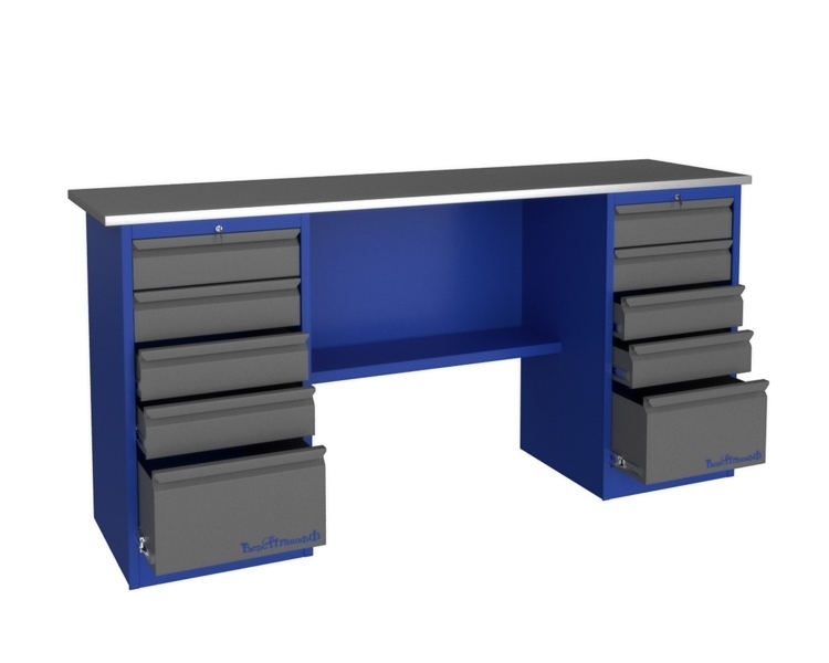 Верстак PRF-E 218 Д5 Д5 – бюджетный вариант для обустройства рабочих мест в небольших мастерских, автомобильных сервисах, промышленных цехах, частных гаражах и т.д. Максимальная нагрузка, которую выдерживает изделие, составляет 300 кг.