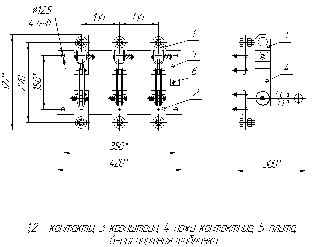 Разъединители состоят из изоляционного основания, на которое установлены три пары неподвижных контактов, которые вместе с подвижными образуют три полюса аппарата.