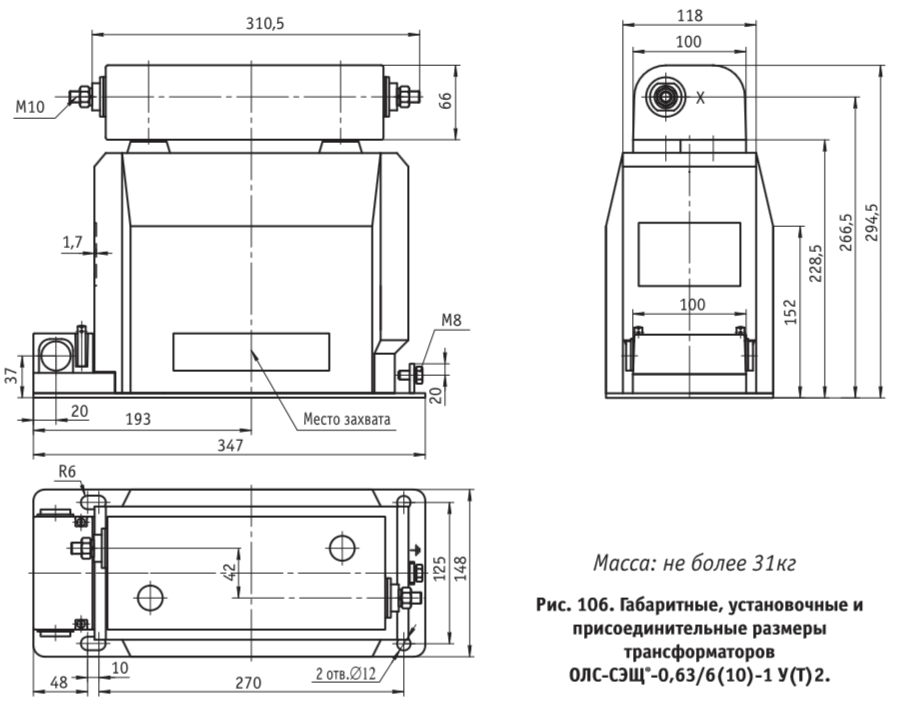 Трансформаторы обеспечивают питание цепей собственных нужд пунктов секционирования и автоматического включения резерва (АВР) электрических сетей 6410 кВ частоты 50 Гц. Трансформаторы по виду конструкции являются опорными однофазными двухполюсными двухобмоточными. Корпус трансформаторов выполнен из эпоксидного компаунда, который одновременно является главной изоляцией и обеспечивает защиту обмоток от механических и климатических воздействий. Возможно заземление одного из вводов вторичной обмотки непосредственно на основание винтами М5.