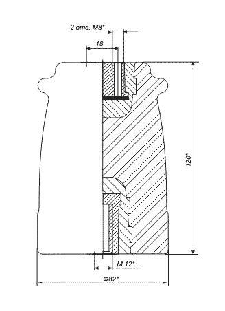 Исполнение I- шпилька сверху М8, шпилька снизу М12