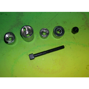 Для снятия и замены металлической втулки заднего моста Мерседес 201/124/202/140/129/210. Включает в себя осевой подшипник и нажимную деталь, которая обеспечивает правильное положение новой металлической втулки после замены.
