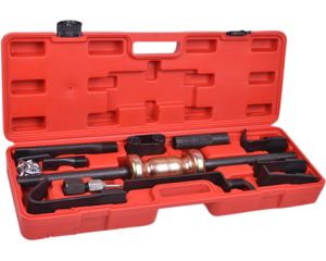 Обратный молоток TA-D1089 позволяет восстановить геометрию кузовных деталей автомобиля. С его помощью можно удалить вмятины, а также работать с деталями, расположенными в труднодоступных местах. Принцип работы заключается в том, чтобы прикрепить необходимый захват к деформированной детали и ударить в опорную шайбу обратным молотком. Для более удобного хранения набор поставляется в кейсе.