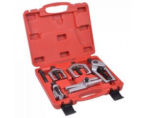 Получить консультацию по товару: Узнать цену Бесплатная доставка Монтаж оборудования Сервис Углеродистая сталь, съемники 5шт. 1шт съемник шарового шарнира, 1шт сепаратор, 1шт съемник сошки, 1шт съемник шаровой/наконечника поперечной рулевой тяги, 1шт съемник рулевой тяги/ внутреннего подшипника.