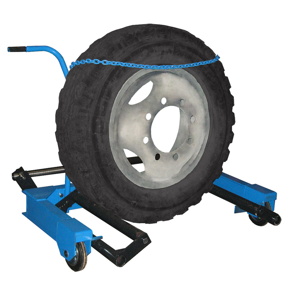 Тележка для снятия и транспортировки колес грузовых автомобилей, для колес с наружным диаметром от 850 до 1300 мм., максимальная масса поднимаемого груза 700 кг.