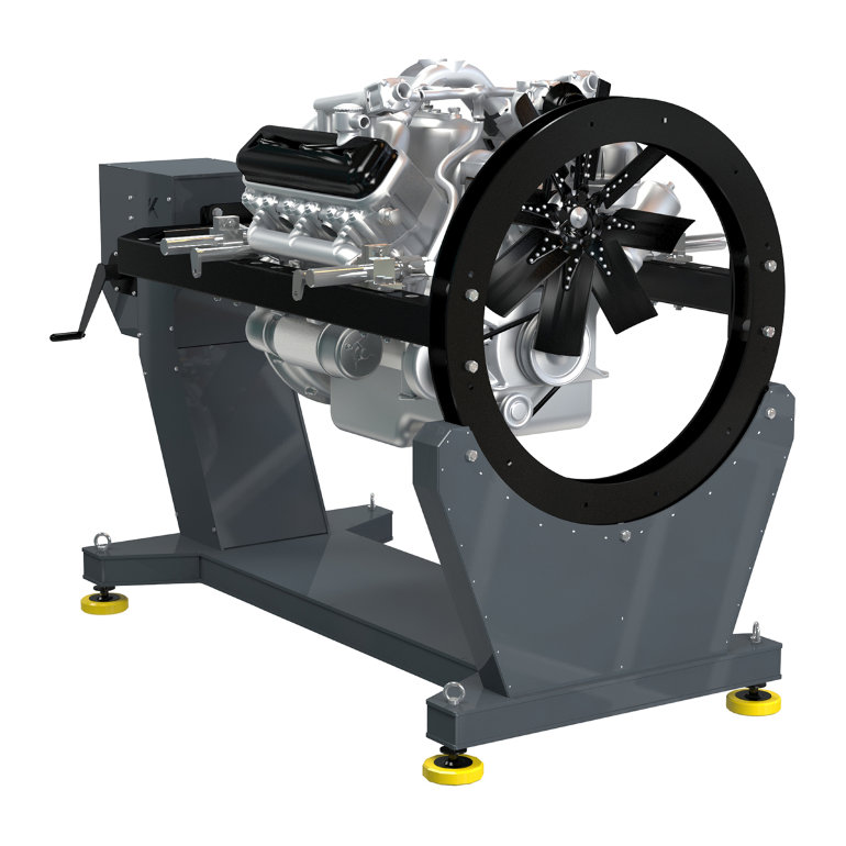 Конструкция стенда позволяет вывешивать ремонтируемый агрегат в удобной позиции для его последующей разборки и сборки. Поворот рамы на 360° позволяет проводить разборку и сборку любых труднодоступных узлов дизельных двигателей.