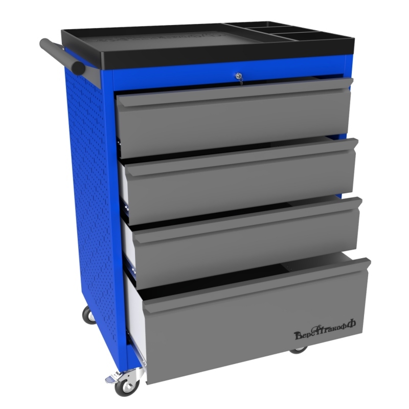 Получить консультацию по товару: Узнать цену Бесплатная доставка Монтаж оборудования Сервис 4 выдвижных ящика: 3 ящика высотой 130мм 1 ящик высотой 205 мм Технические характеристики Размеры (ВхШхГ) 950x660x470 мм Вес 48 кг Материал Металл Производитель Верстакофф ® Цвет Синий RAL 5005
