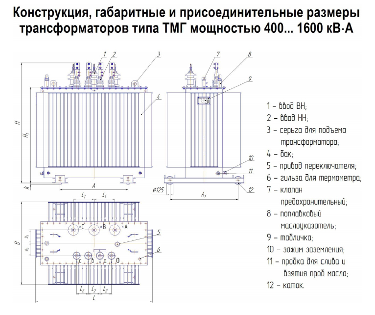 Трансформаторы серии ТМГ выполнены в герметичном исполнении, без расширителя. В них полностью отсутствует воздушная или газовая подушки. Это улучшает условия работы масла: исключается его ускоренное окисление, шлакообразование и увлажнение.