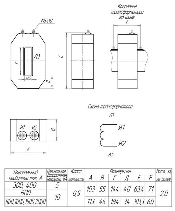 | Номинальный первичный ток, А | 300 | 400 | 600 | 800 | 1000 | 1500 | 2000 |
