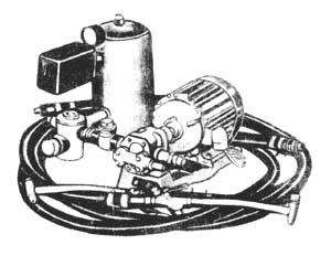 Установка состоит из насоса шестеренчатого исполнения, приводимого в действие электродвигателем, гидравлического аккумулятора, фильтра, автоматическрго выключателя с манометром, обратного и предохранительного клапанов, двух раздаточных пистолетов со шлангами.