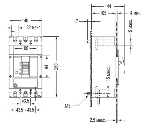 | Номинальный ток выключателя In, А | 125; 160; 200; 250 | |||