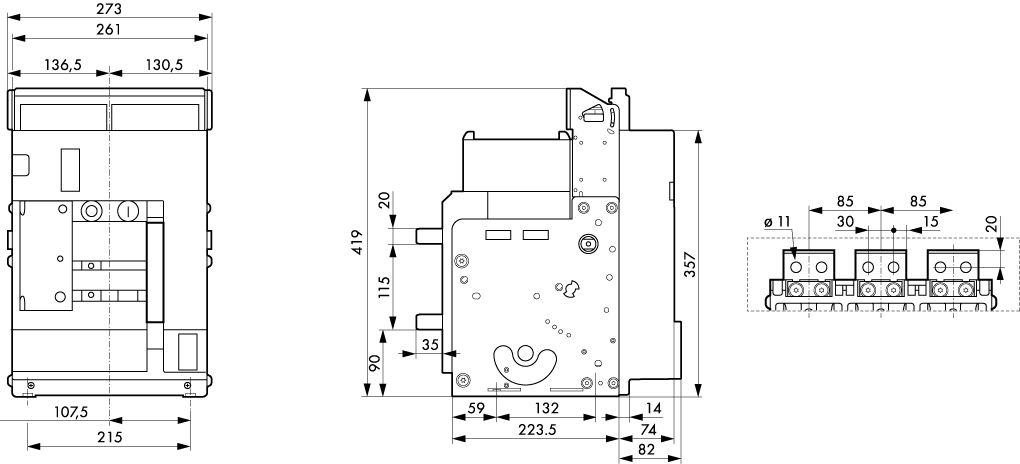 Номинальный ток выключателя In, А 250, 320, 400, 500, 630