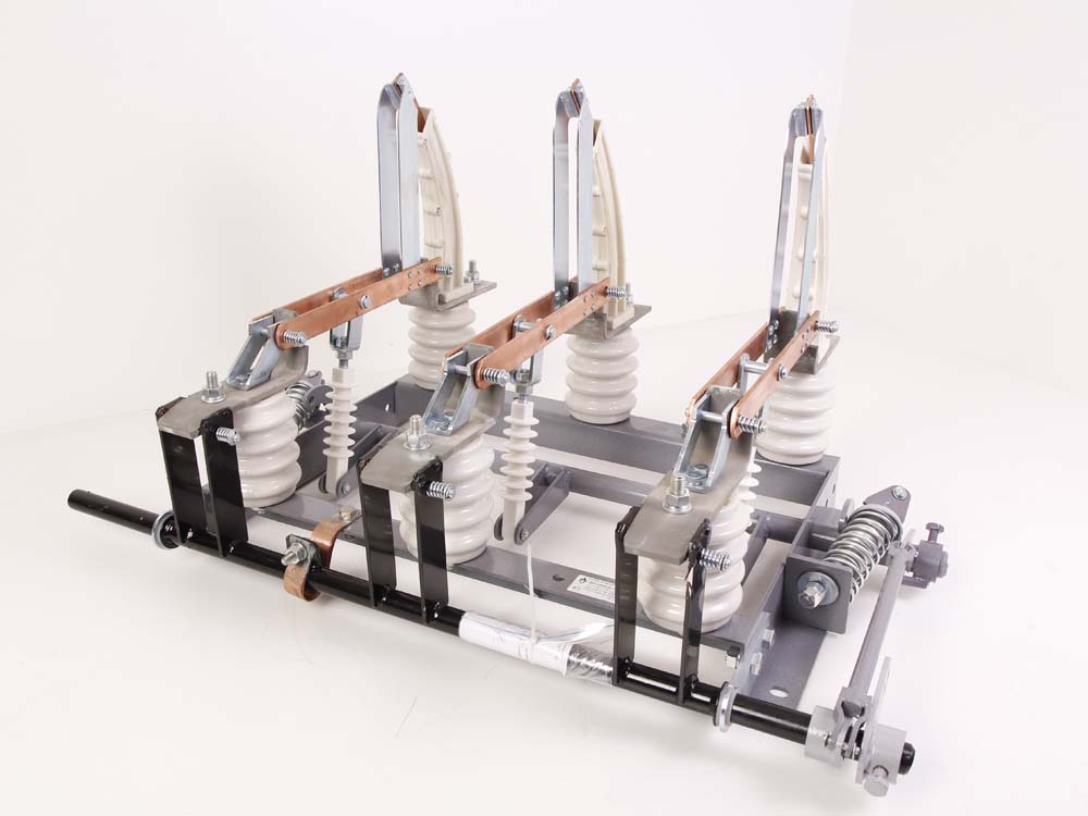 Вал токоведущих и заземляющих ножей связаны блокировкой, которая обеспечивает невозможность включения заземляющих ножей