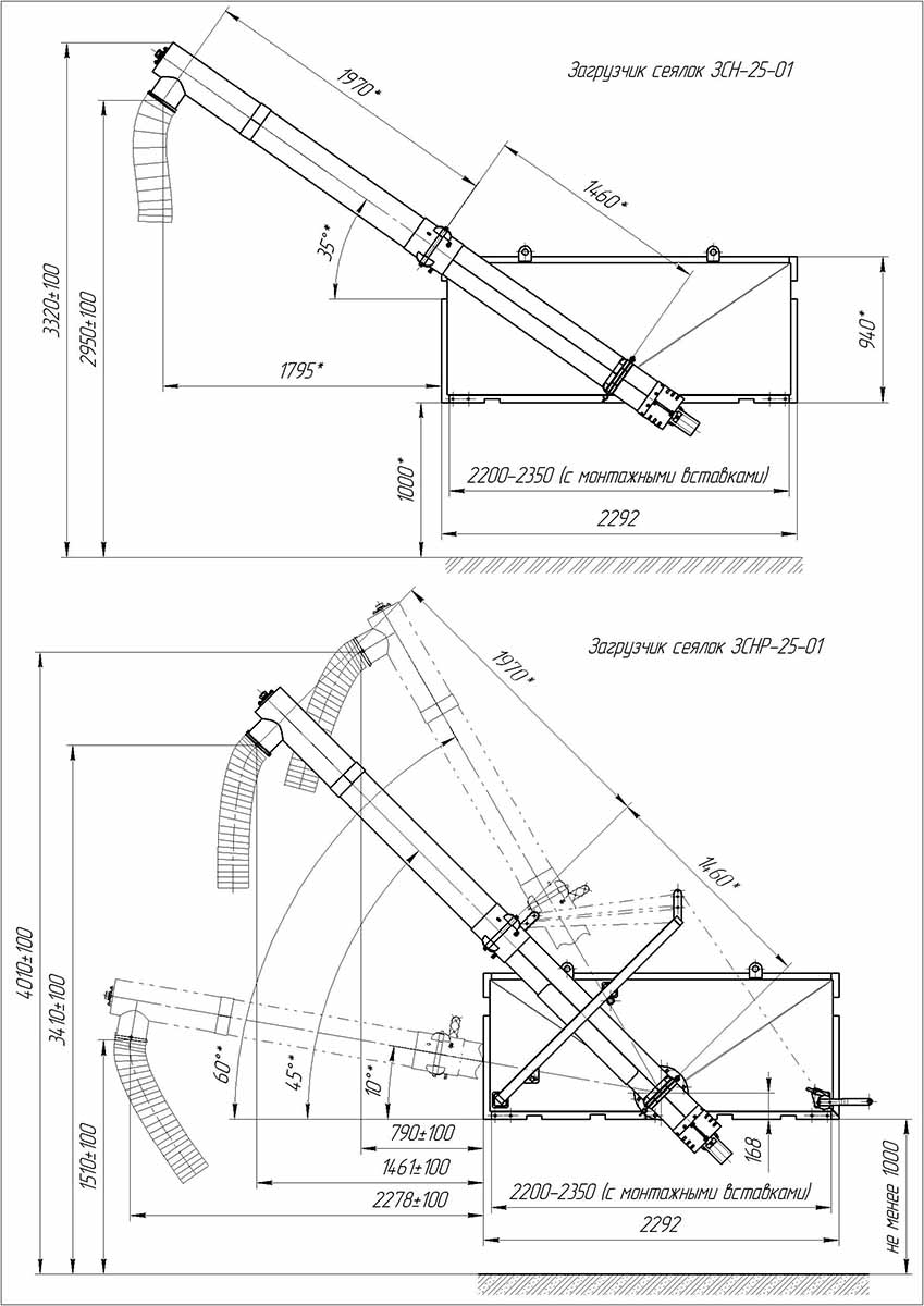 | Габаритные размеры загрузчика в транспортном положении, мм (длина х ширина х высота) |