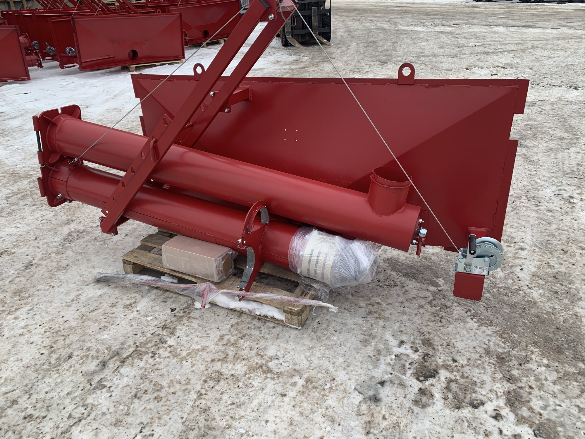 В состав оборудования входит: корпус борта, выгрузное устройство со шнеком и гидромотором МГП-160, откидной узел со шнеком, труба гофрированная, рамка и гидросистема. Предлагаемые нашим Заводом модификации загрузчиков оснащены гидроприводами, ориентированными на работу с отечественными моделями автотракторной техники.