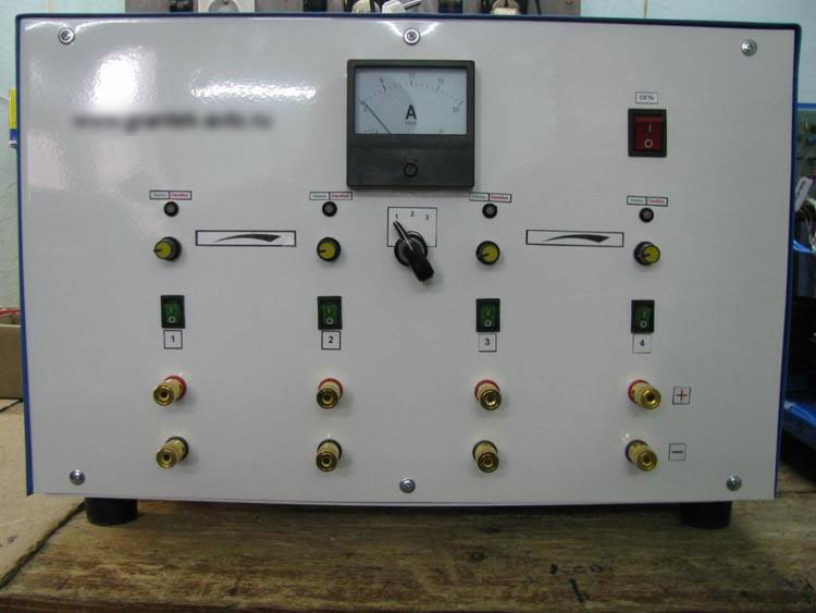 Применяется на предприятиях и в автосервисах со средней проходимостью. Дает возможность одновременно заряжать до 4 аккумуляторных батарей емкостью до 250Ач напряжением 12В.
