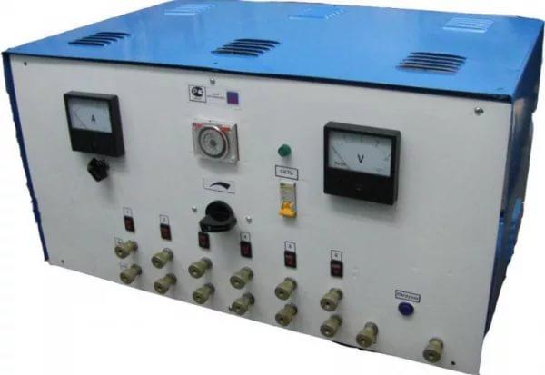 Применяется на предприятиях с большим количеством транспорта. Дает возможность одновременно заряжать до 6 аккумуляторных батарей емкостью до 300 Ач напряжением 12В.